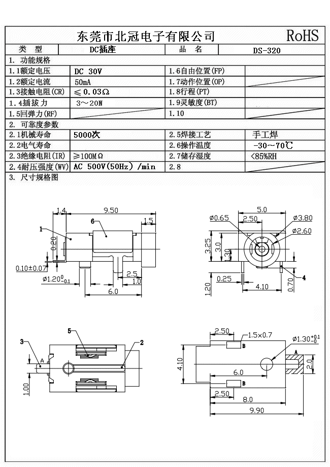 Typical Specifications 1. Rating : DC 30V 0.5A 2. Contact Resistance : 70?Max 3.Lnsulation Resistance: DC500V 1Minute 4.Operating Temperature Range: -25℃+80℃ 5.Ambient Humidity Used: ≤85%RH 6. Operating Force : 3-20N 7. Operating Life : 5,000Cycles