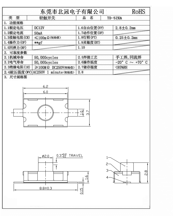 產(chǎn)品名稱:TD-52XA輕觸開關(guān)