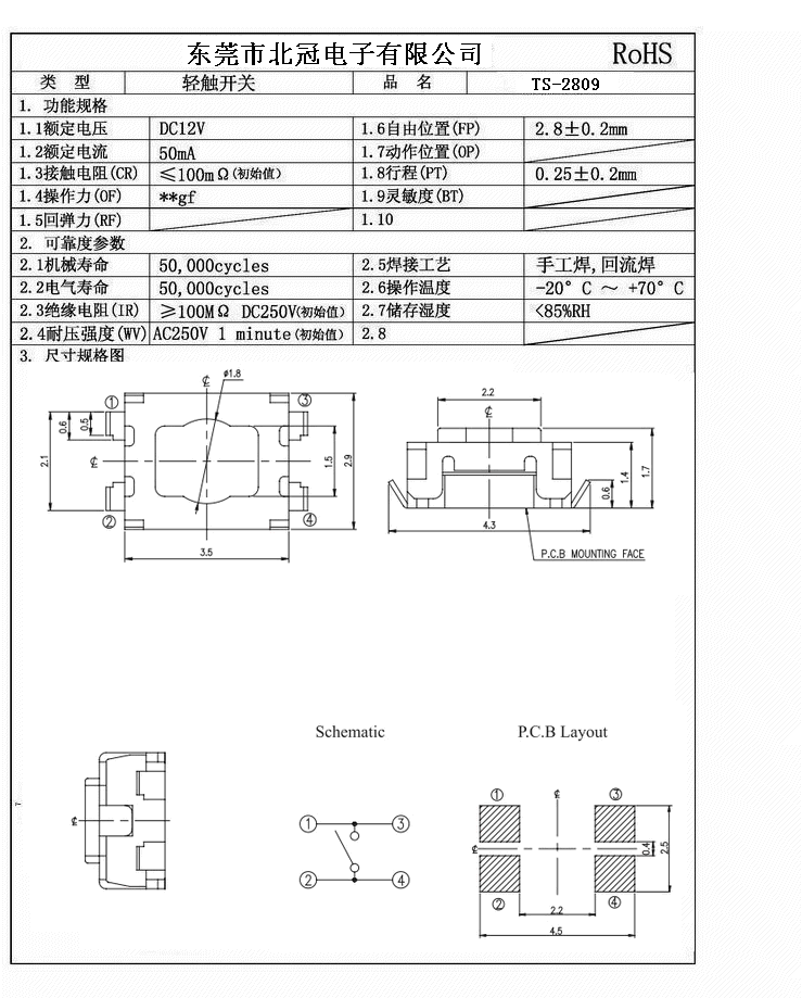 產品名稱:TS-2809輕觸開關
