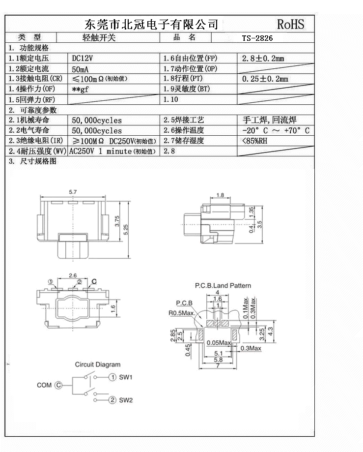 產(chǎn)品名稱(chēng):TS-2826輕觸開(kāi)關(guān)