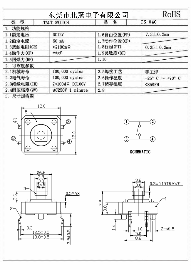 產(chǎn)品名稱:TS-040輕觸開關(guān)