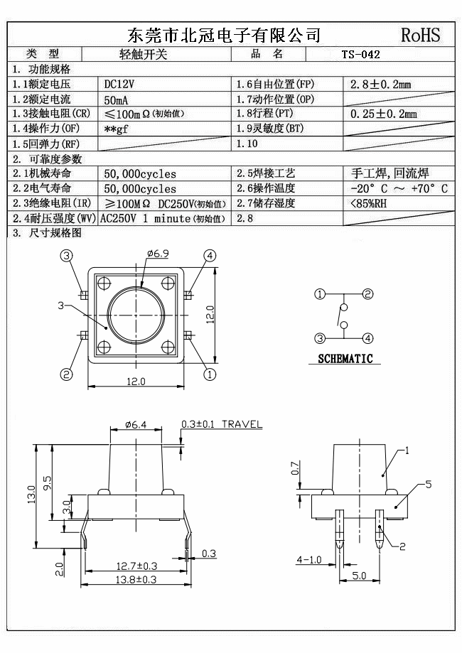 3.Lnsulation Resistance: ≥100mΩ DC250V