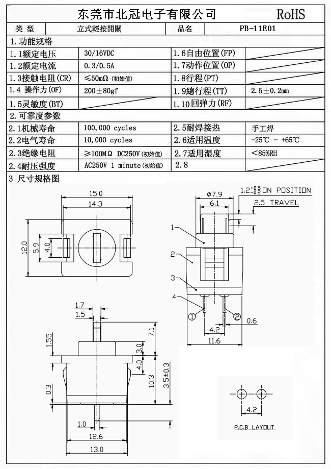3.Lnsulation Resistance: ≥100mΩ DC500V