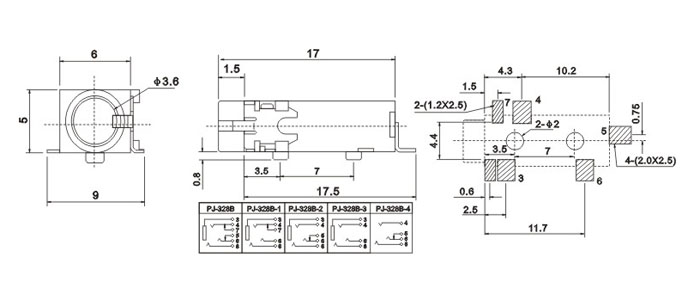 產(chǎn)品名稱:PJ-328B 品名:3.5耳機插座 |