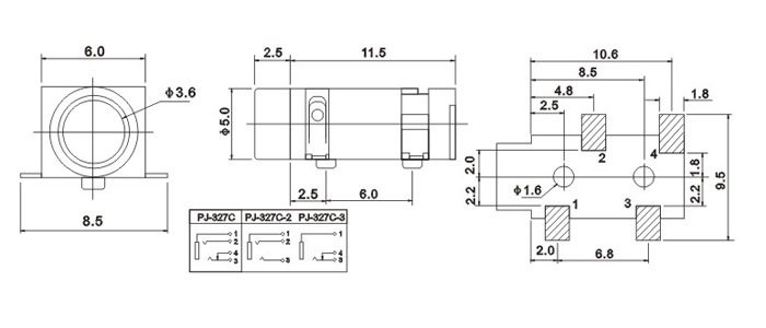 產(chǎn)品名稱:PJ-327C 品名:3.5耳機插座 |