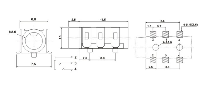 產(chǎn)品名稱:PJ-313D 品名:3.5耳機(jī)插座 |